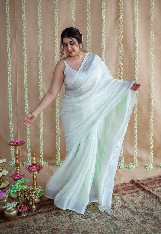 PJFB25A004 Green Silver Pure Handloom Linen Saree