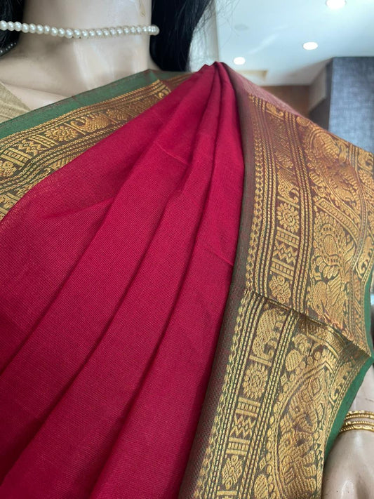OT25A199 Dark Red Pure Handloom Kanchi Cotton Saree