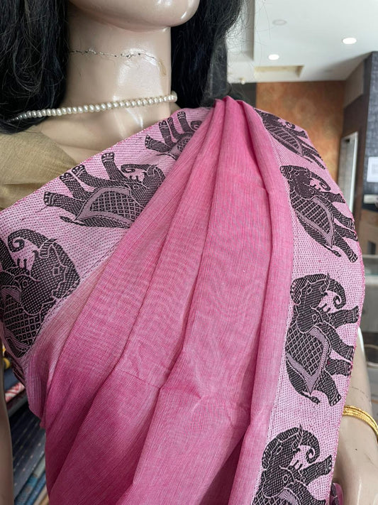 OT25A210 Pink Pure Handloom Chettinad Cotton Saree
