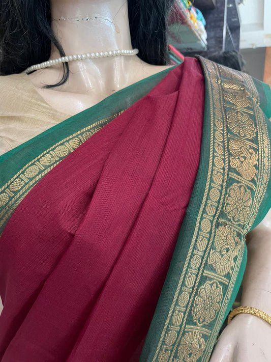 OT25A212 Maroon Pure Handloom Chettinad Cotton Saree