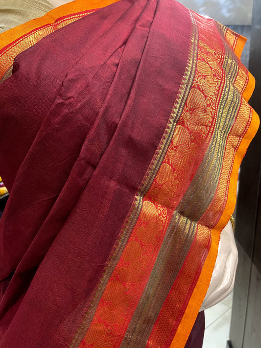 SP24A101 Maroon Yellow Pure Handloom Kanchi Cotton Saree