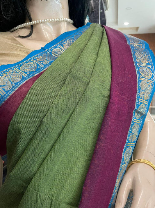 OT25A207 Olive Green Pure Handloom Chettinad Cotton Saree