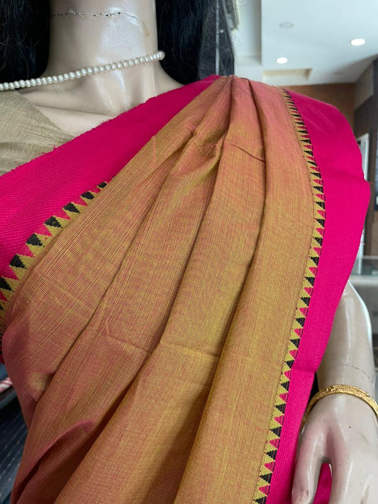 OT25A209 Orange Pure Handloom Chettinad Cotton Saree
