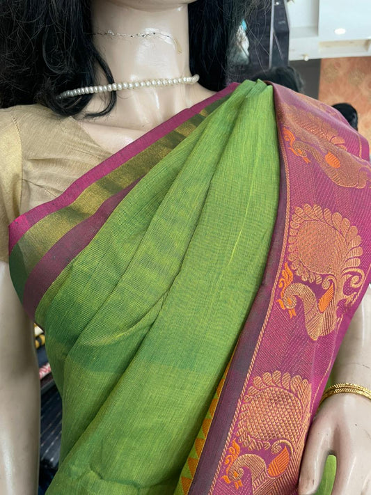 OT25A211 Green Pure Handloom Chettinad Cotton Saree