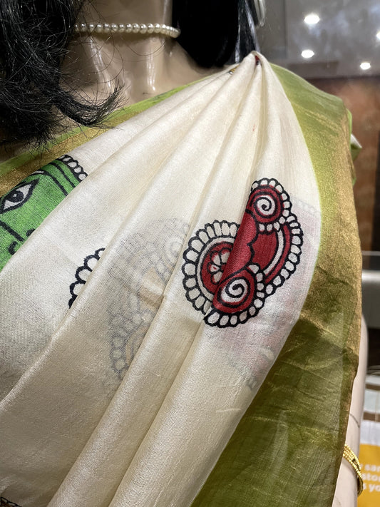 PJJA22A001 Cream Gold Hand Painted Tussar Silk Saree