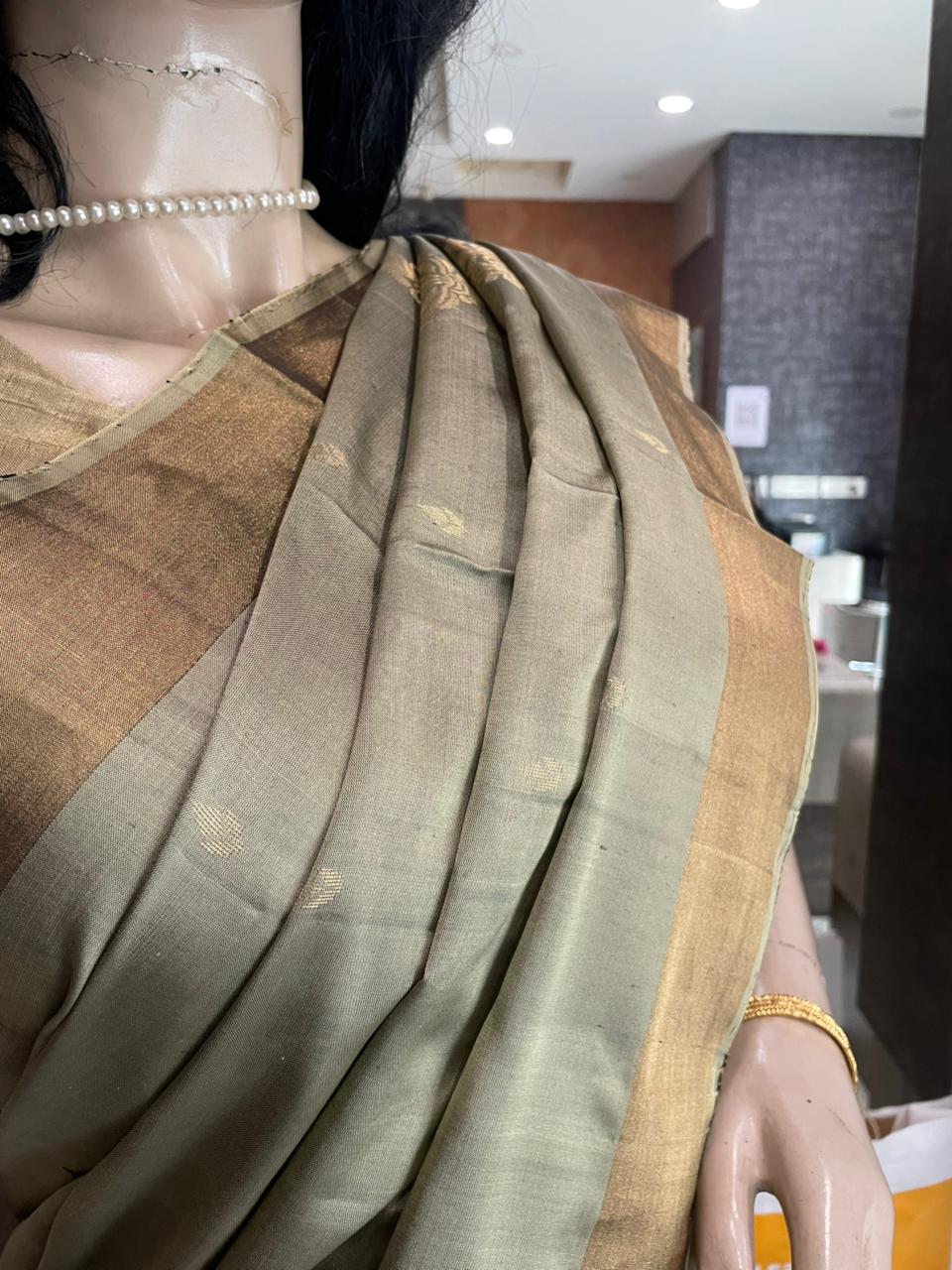OT25A082 Sage green Pure Handloom Soft Silk Saree