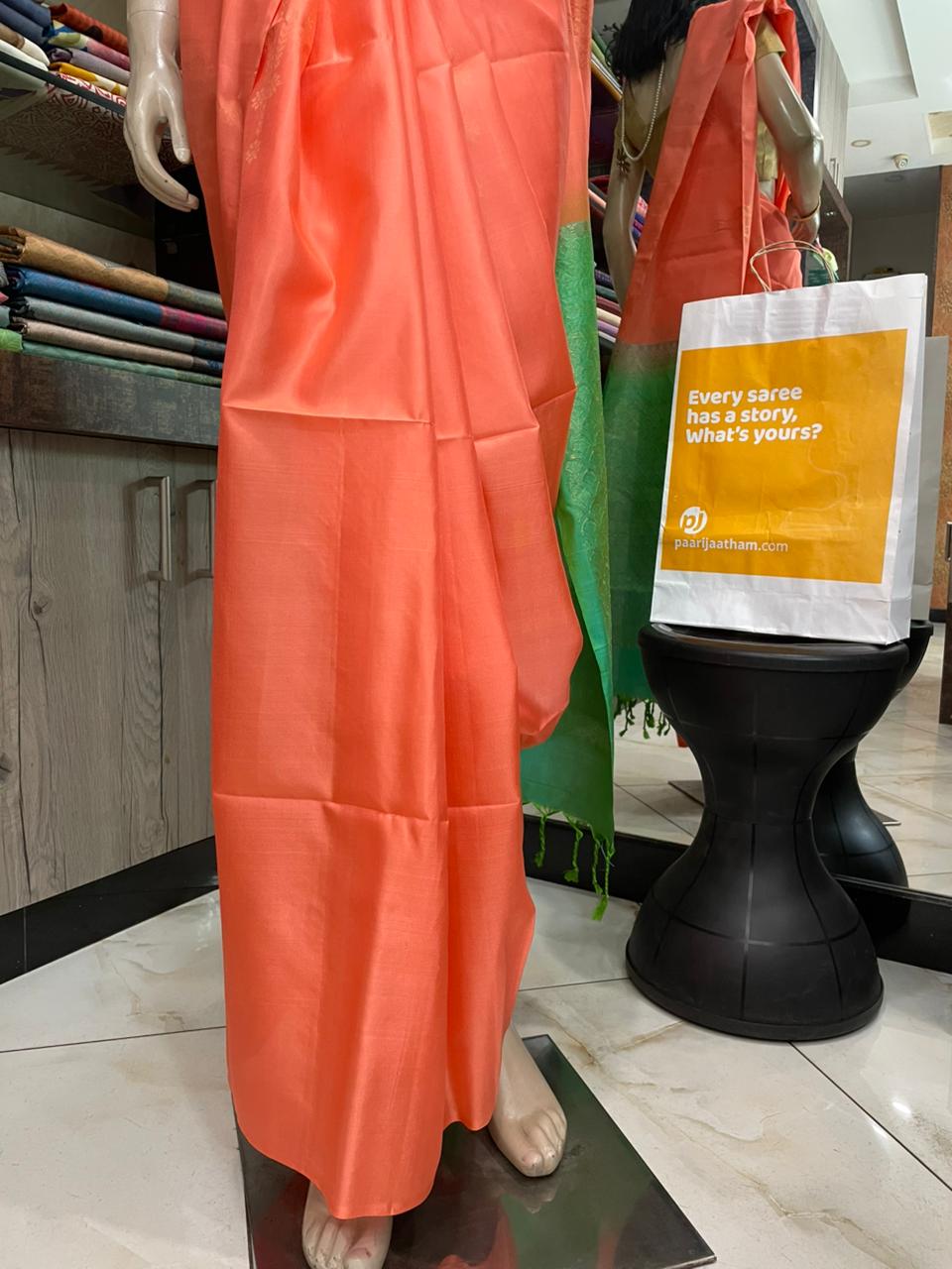 OT25A085 Orange Pure Handloom Soft Silk Saree
