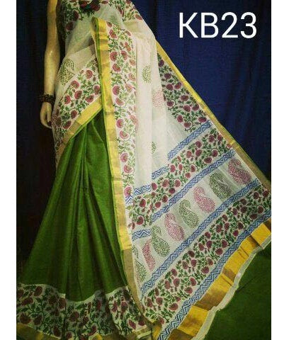 pj-mehandi-green-hand-block-painted-kerala-cotton-saree-kcbadi042