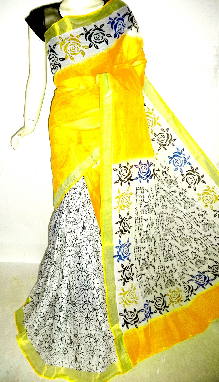 pj-yellow-black-hand-block-painted-kerala-cotton-saree-kcbadi027