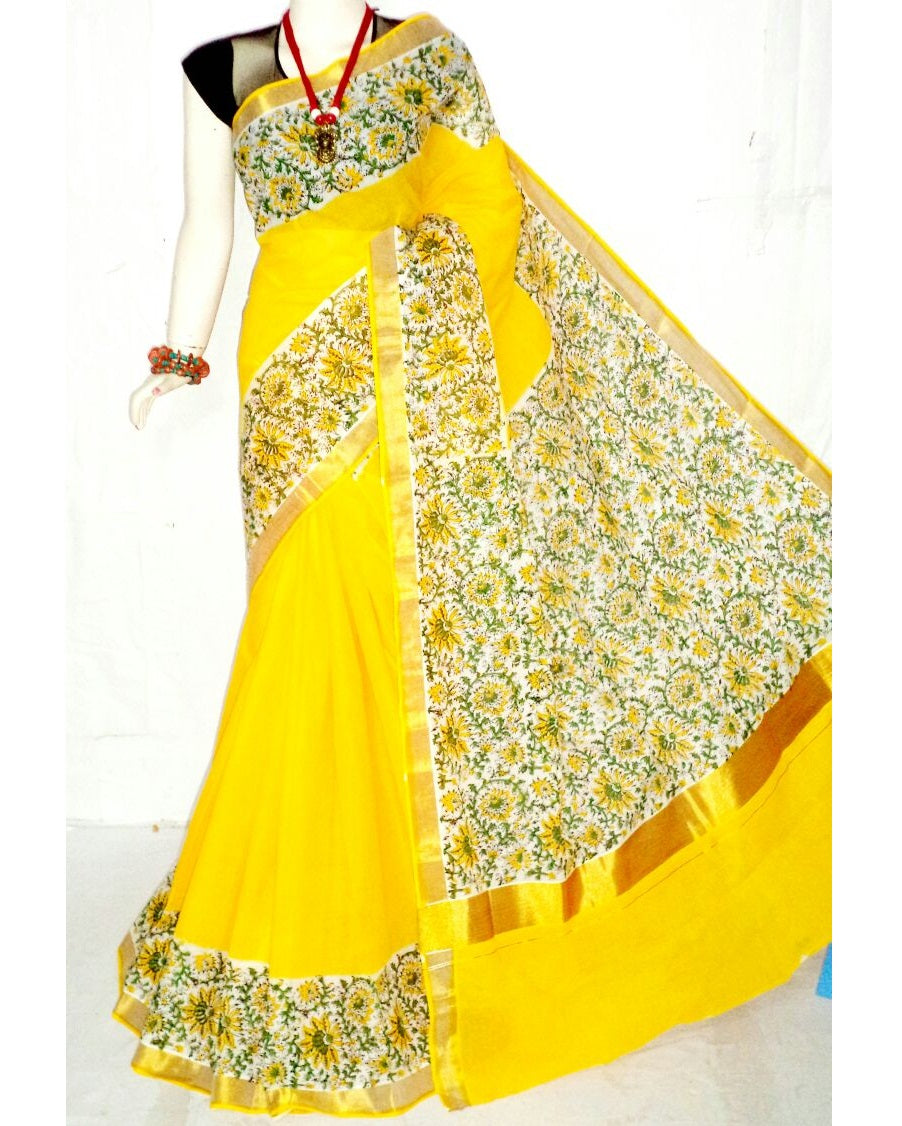pj-yellow-black-hand-block-painted-kerala-cotton-saree-kcbadi029