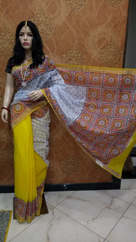 pj-yellow-white-hand-block-painted-kerala-cotton-saree-kcbadi062