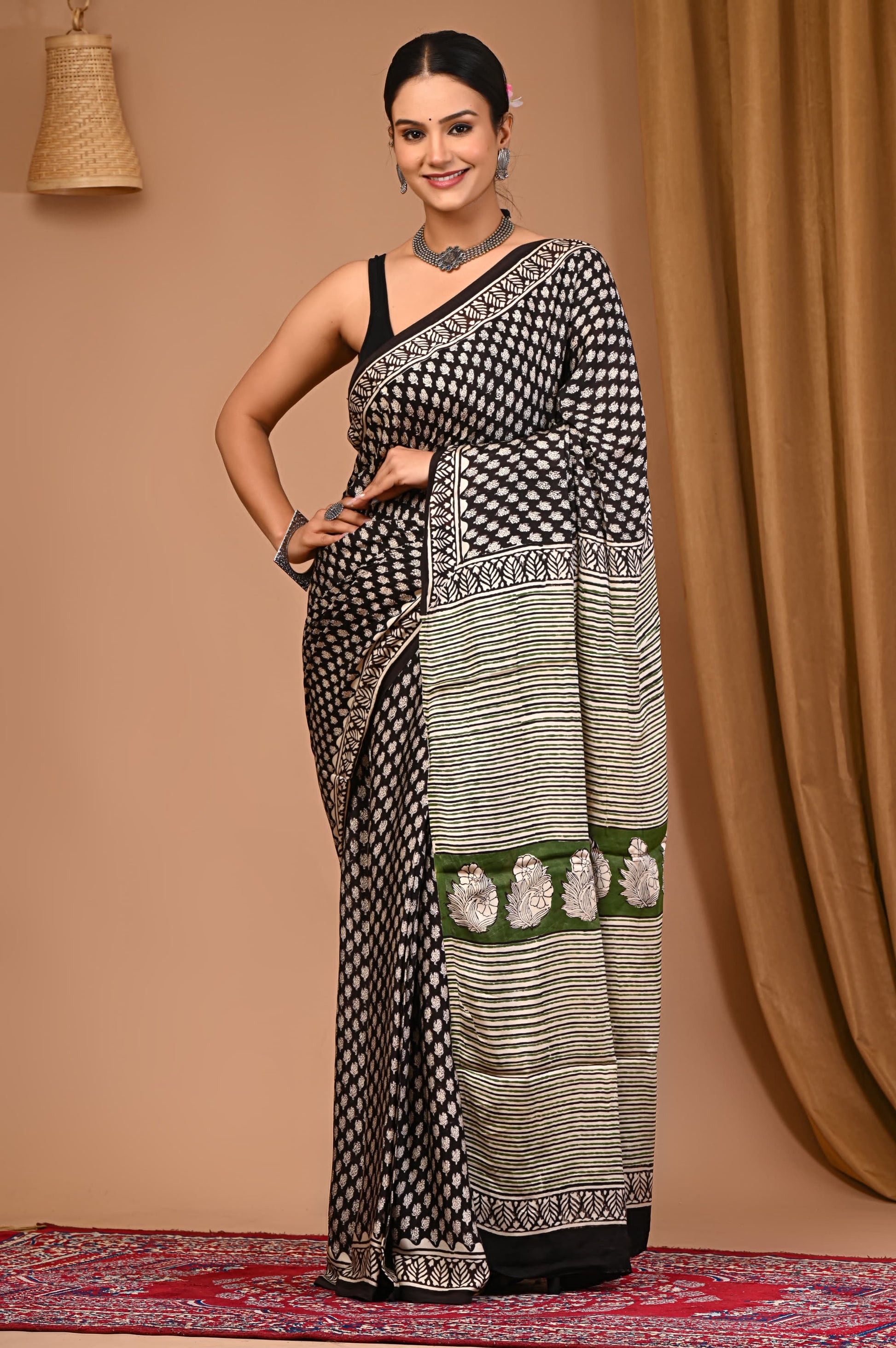 PJNV25A044 Black Pure Block Print Modal Silk Saree
