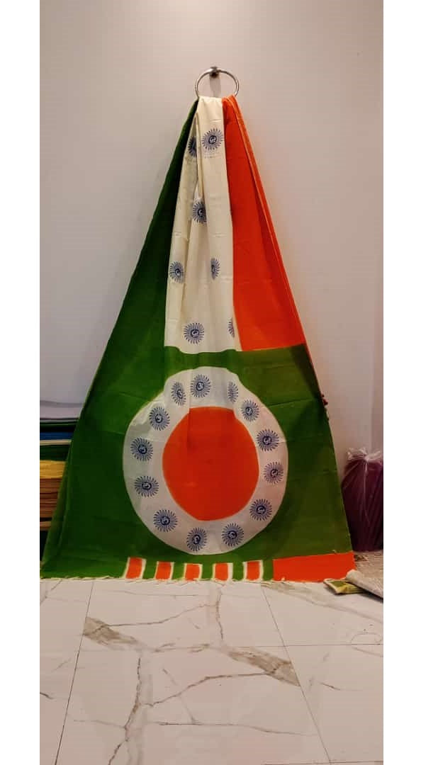 PJJL23A003 White Green Hand Painted Kerala cotton saree