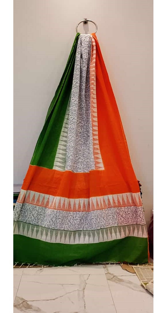 PJJL23A008 White Green Hand Painted Kerala cotton saree